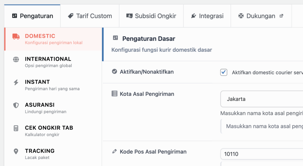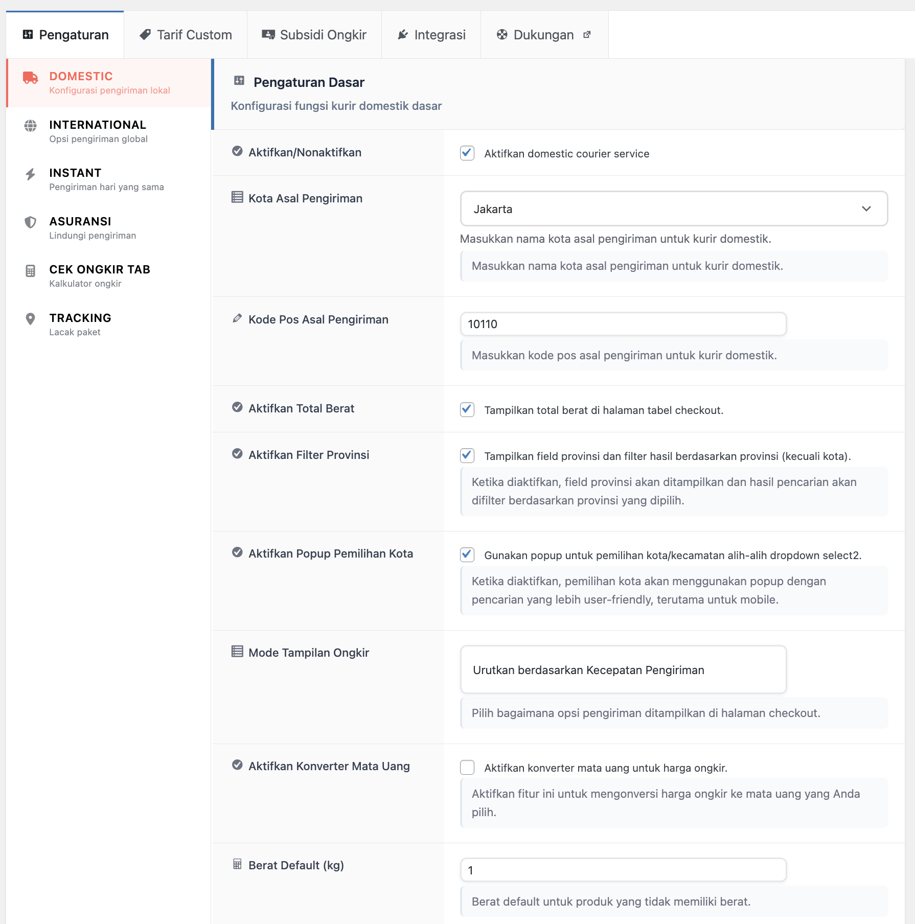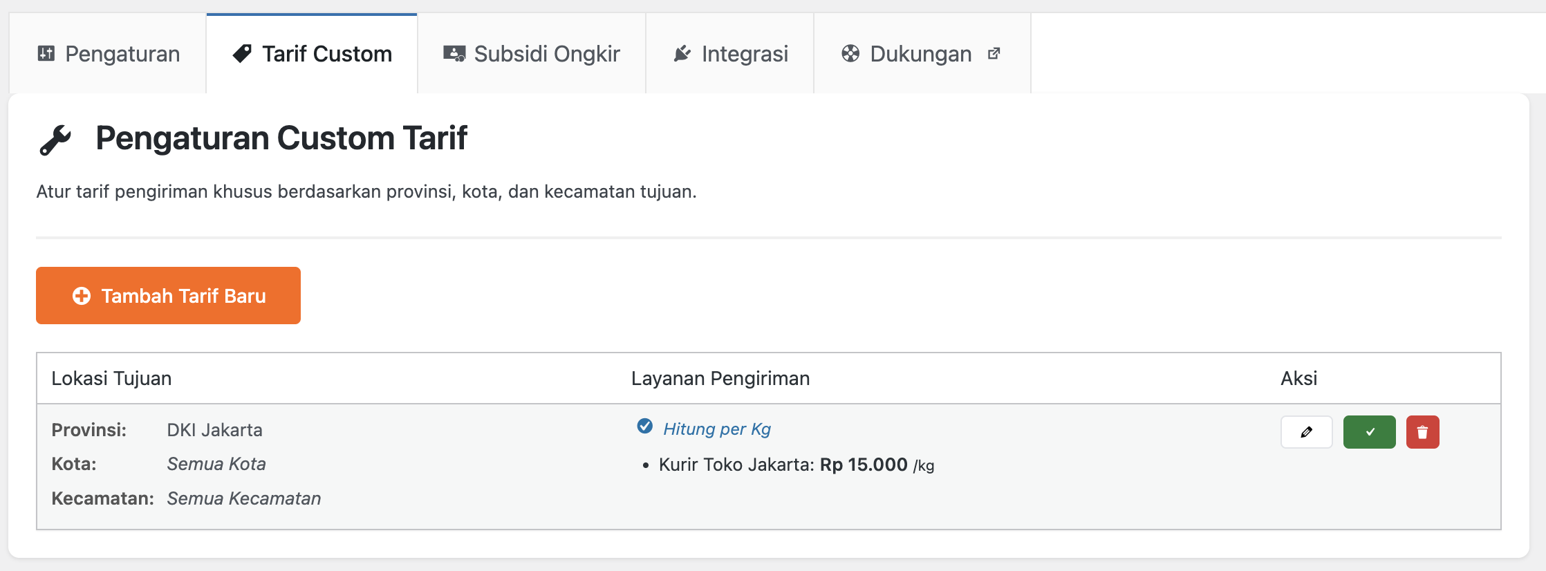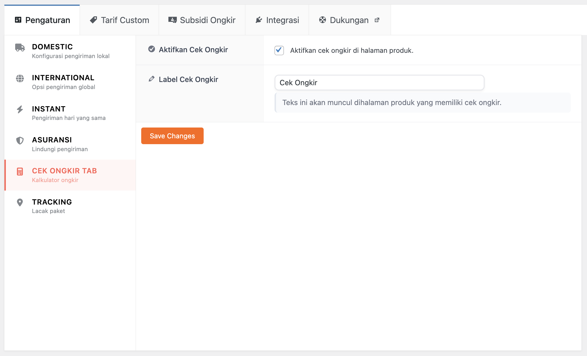 - Pengaturan: Centang untuk mengaktifkan cek ongkir di halaman produk