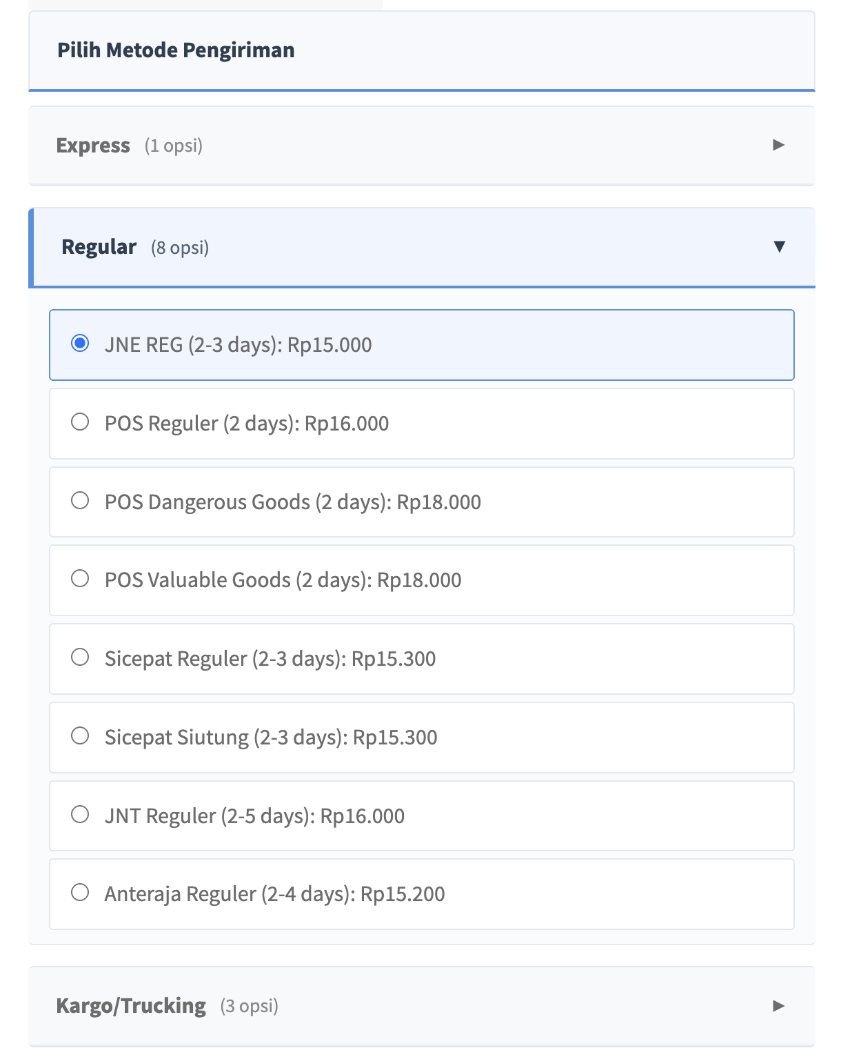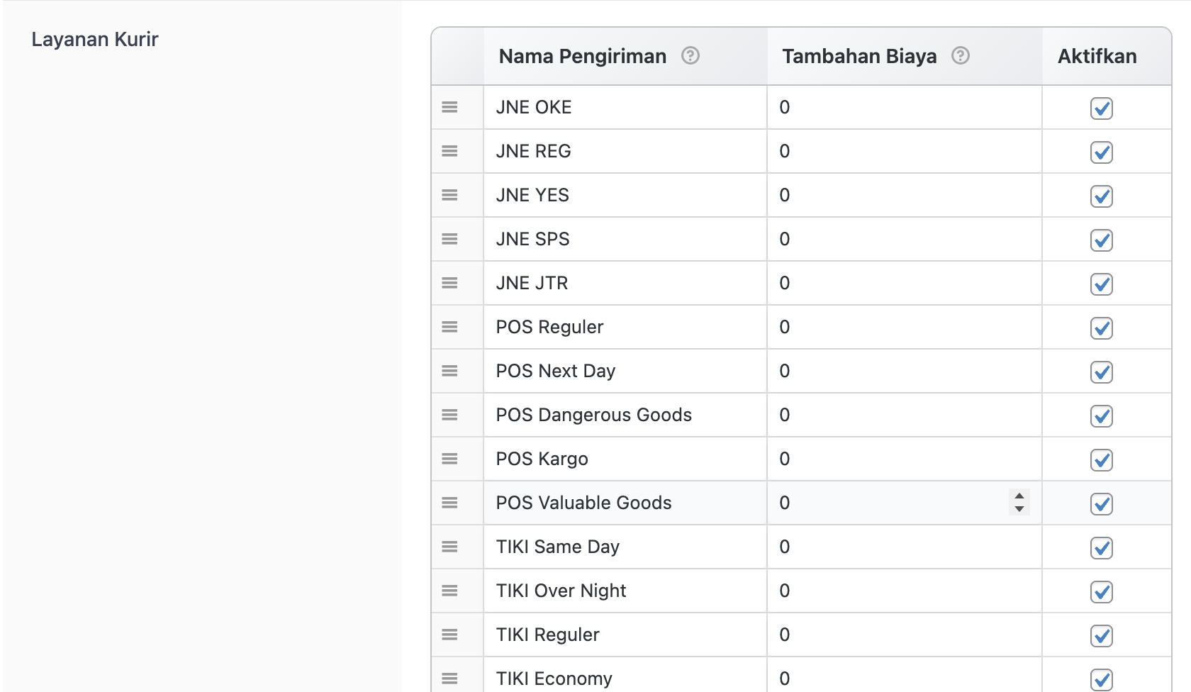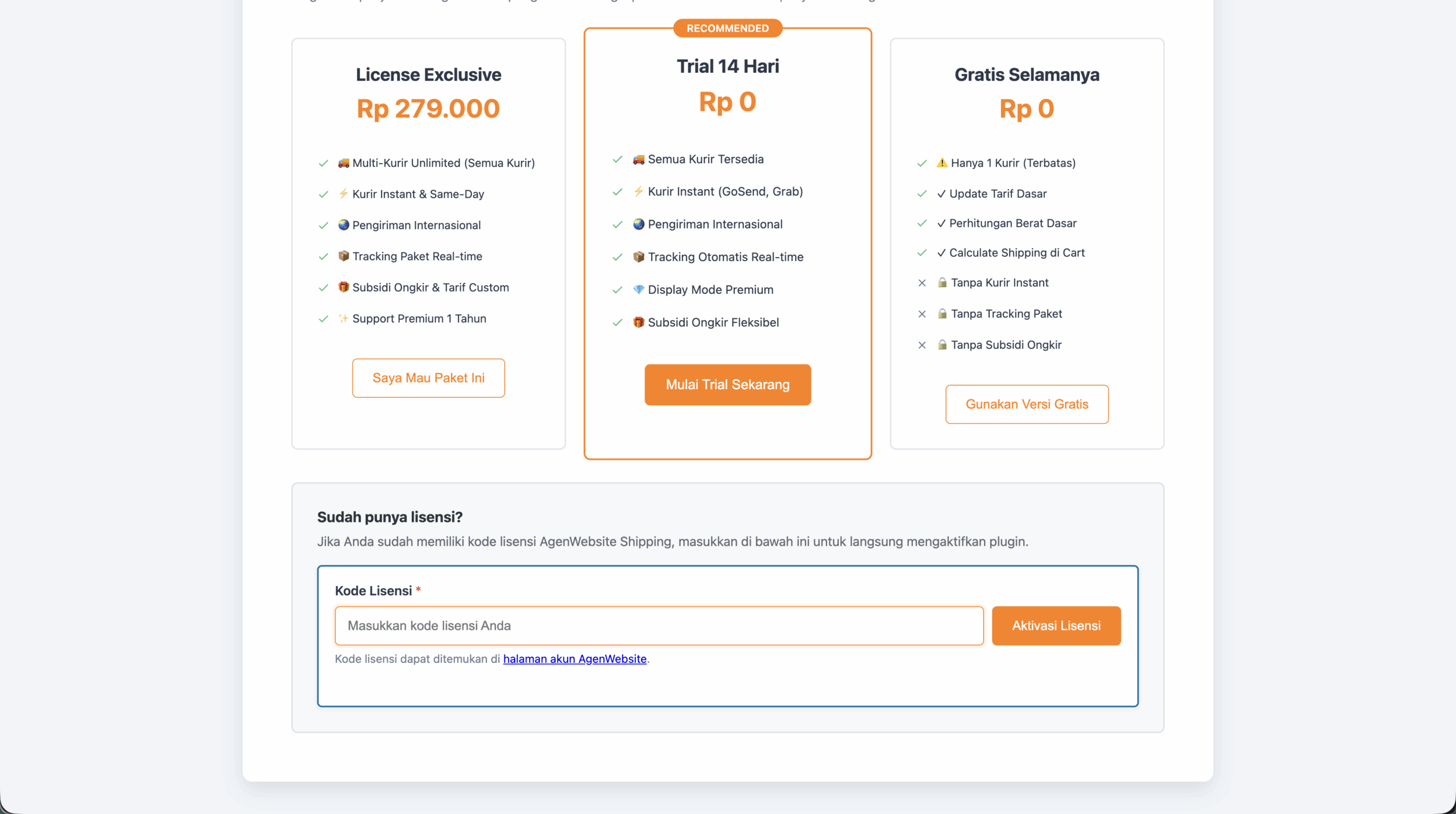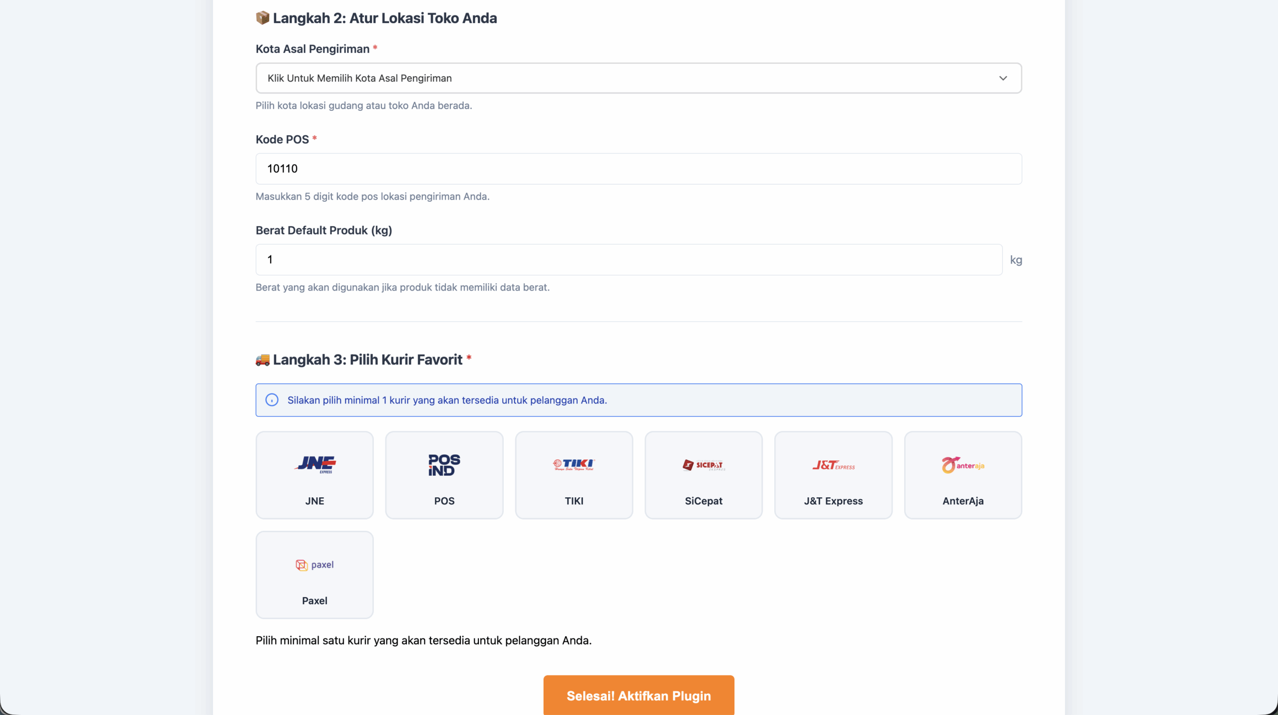 - Catatan: Harga dari plugin bersumber dari API resmi ekspedisi