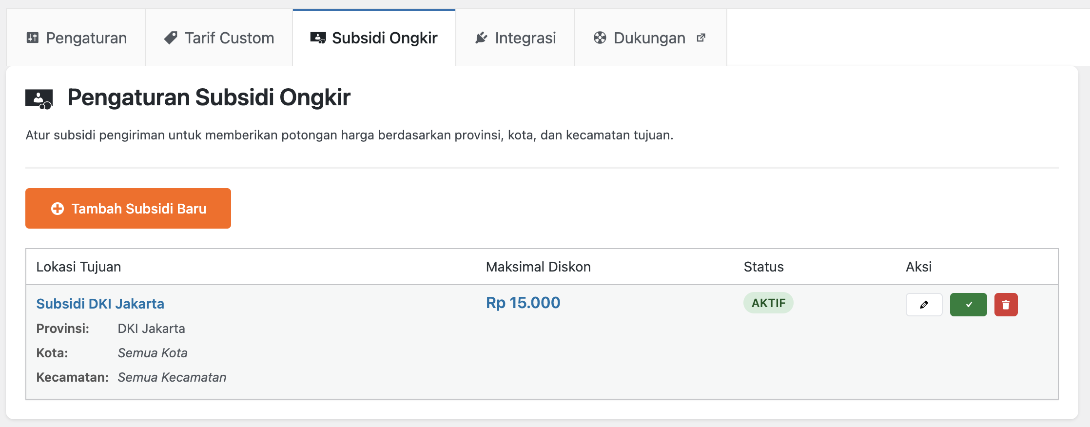 - Buka AgenWebsite Shipping > Subsidi Ongkir