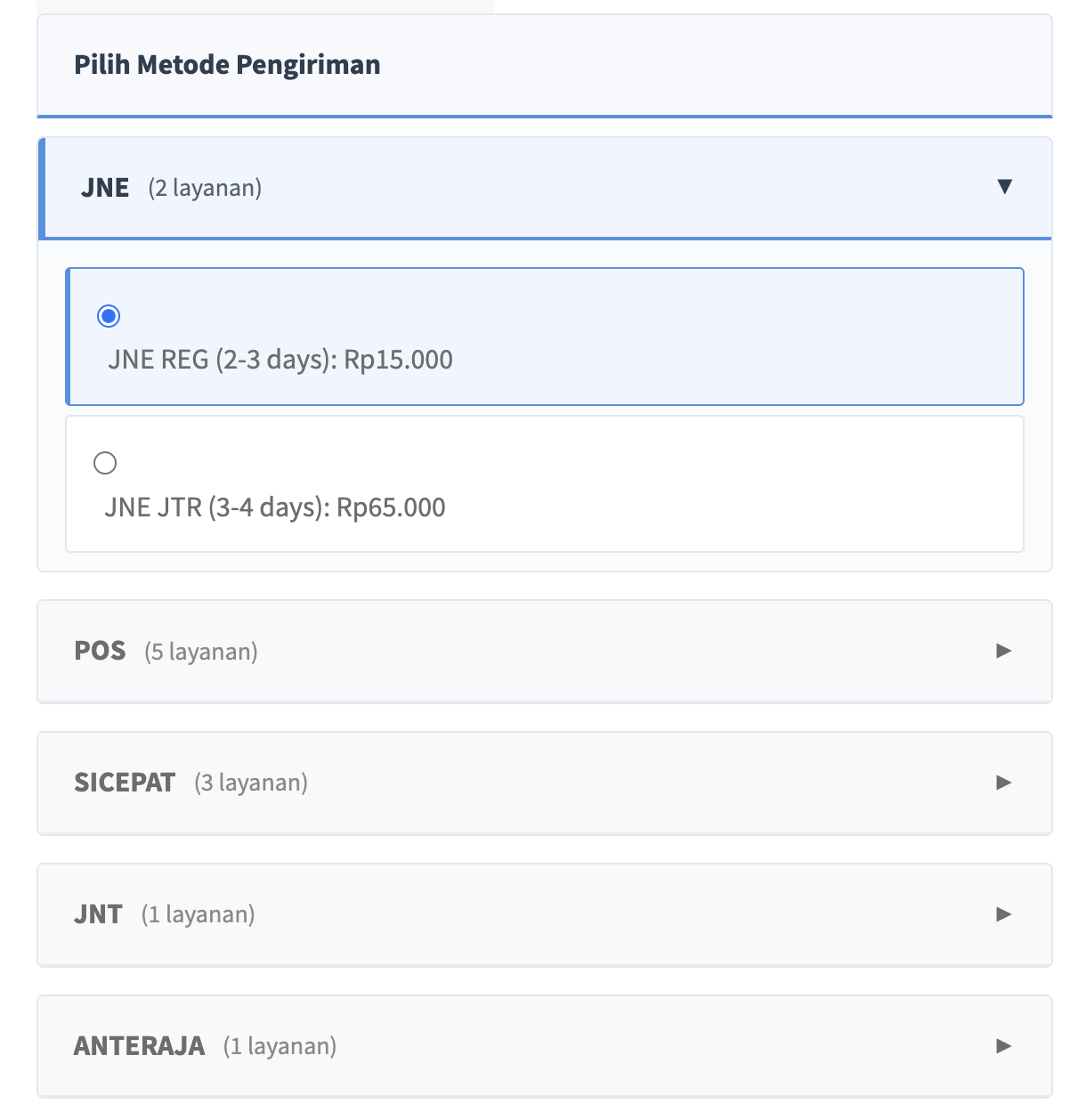- Display Hasil: Menampilkan pilihan kurir dan estimasi biaya pengiriman