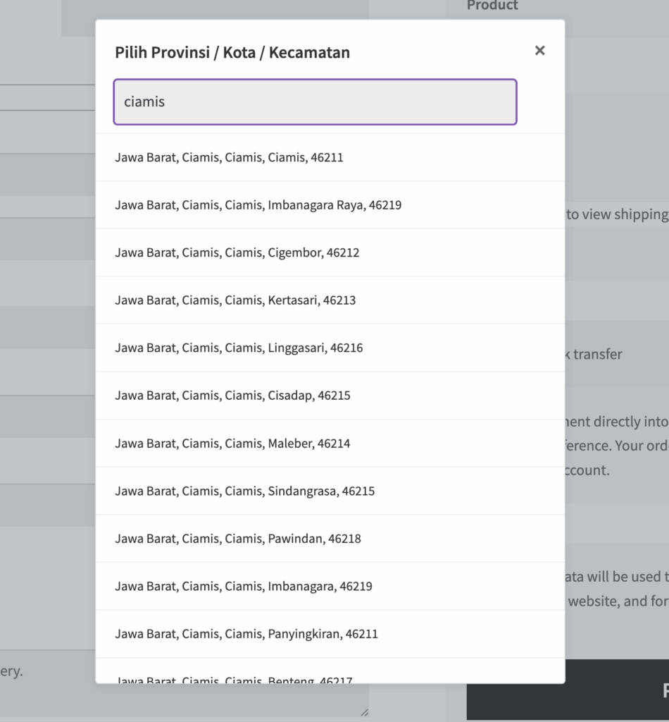 - Input Pelanggan: Pelanggan memasukkan kota/kecamatan tujuan