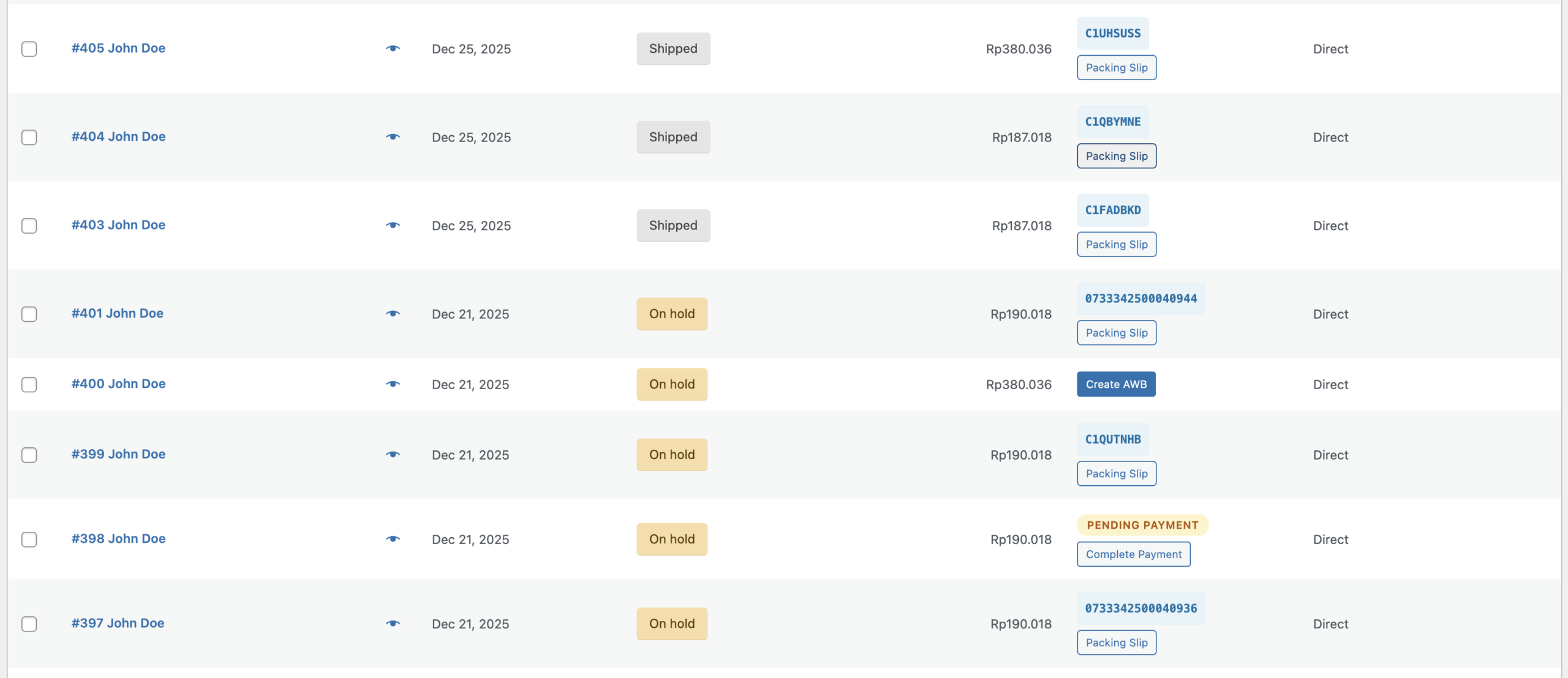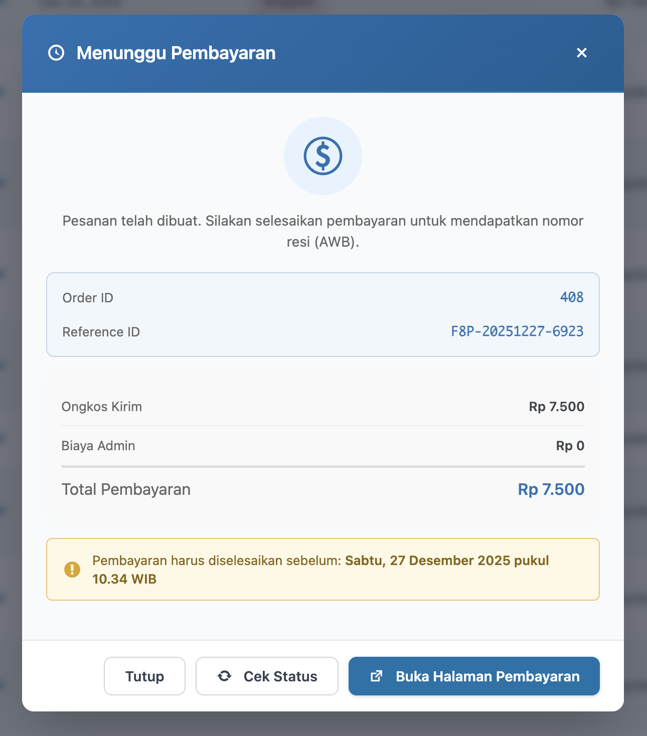Setelah pembayaran berhasil, resi (AWB) akan digenerate secara otomatis.